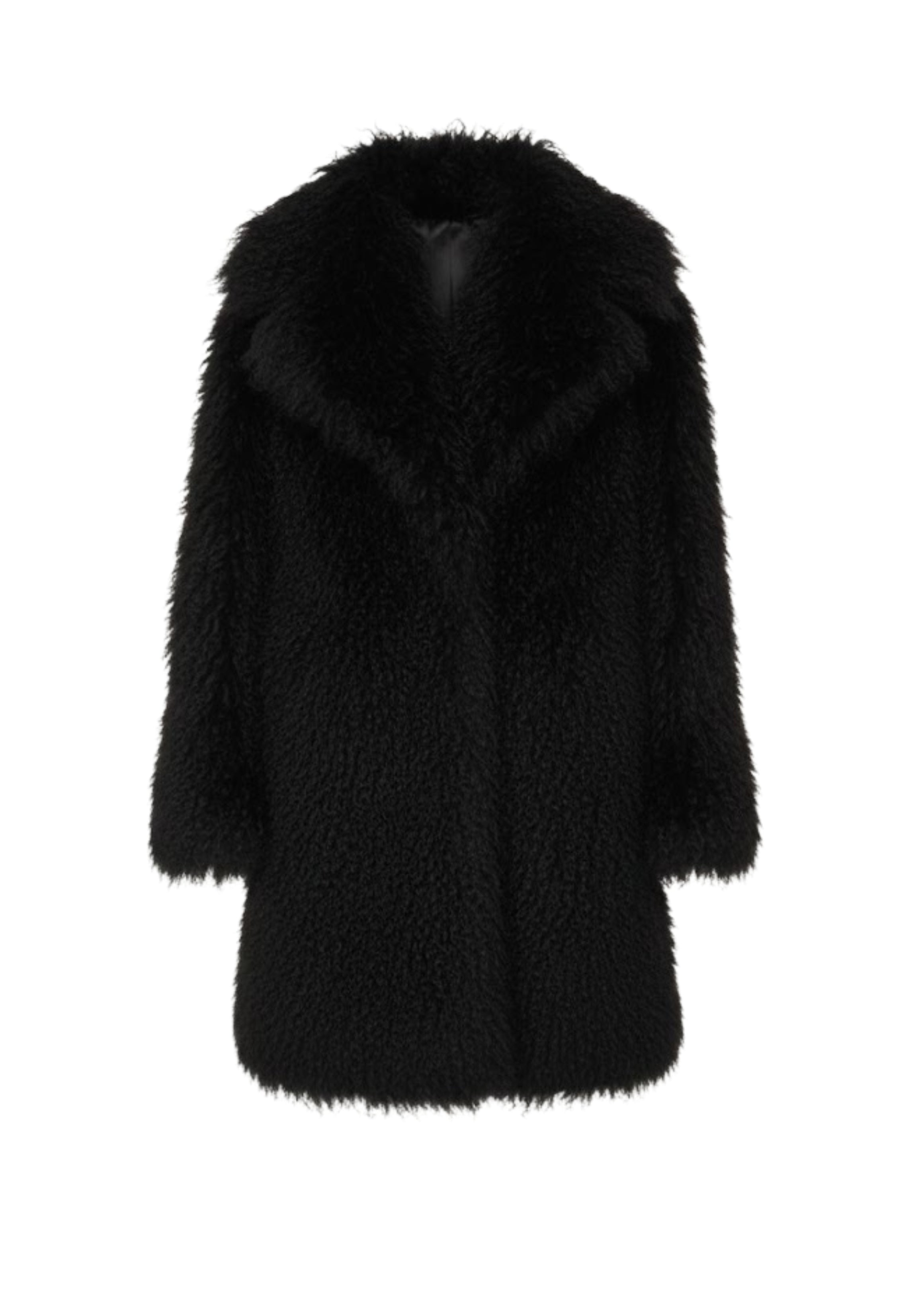 • Ethically sourced Mongolian shearling in a rich, jet-black hue